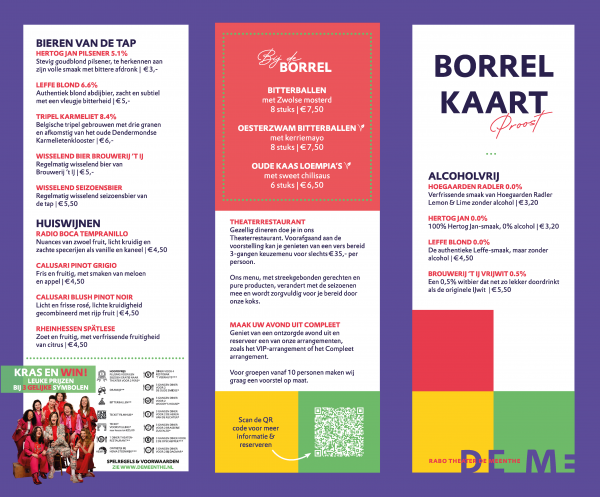 Wij schenken heerlijk speciaalbier, zowel alcoholisch als 0.0, diverse sappen, soepele wijnen en de lekkerste borrelhapjes uit eigen keuken.