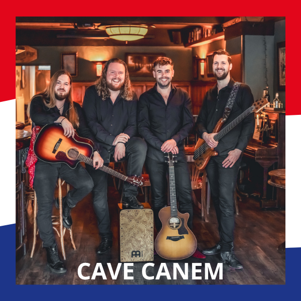 Vanaf 15.15 uur betreedt Cave Canem het podium. Deze band staat bekend om hun akoestische rockcovers van de jaren ’50 tot nu. Verwacht klassiekers als Country Roads, Bed of Roses en Sweet Child O’ Mine – gebracht met veel enthousiasme en ruime podiumervaring.