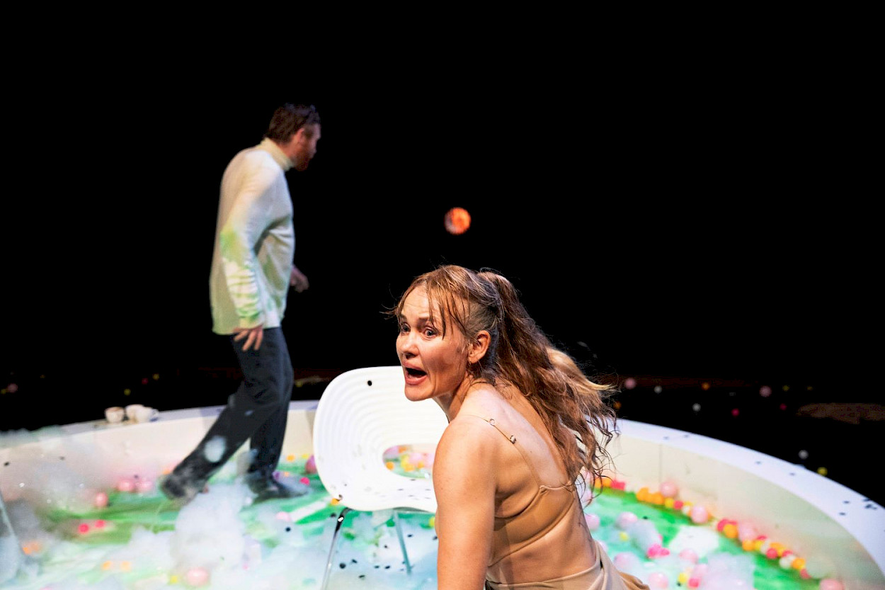 - ‘'Het intermezzo blijkt de macht te grijpen, als een zich in waanzin afspelend slot, met fantastisch bedachte effecten. Die maken alle tragiek tegelijk dolkomisch.’'