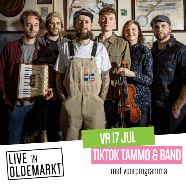 Live in Oldemarkt vr 17 jul | 21:00 uur evenement, Muziek | Marktplein, Oldemarkt € 15,00TikTok Tammo & Band: most d’r bie wezen!