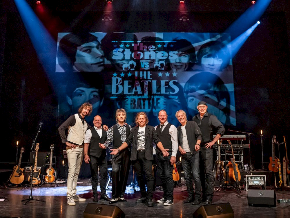Je was in de jaren 60 fan van de rebelse Rolling Stones uit Londen óf van ogenschijnlijk keurige Beatles uit Liverpool. In The Stones vs The Beatles Battle komt deze ‘concurrentiestrijd’ aan bod, maar de beste songs van deze iconen uit de popmuziek voeren natuurlijk de boventoon. Nu wordt de ‘strijd’ opnieuw gevoerd in het theater: koopt u uw kaart voor het Stones, Beatles of het neutrale vak? Met o.a. meestergitarist Harry Sacksioni, Manny Angeletti (internationaal Paul Mc Cartney’s bekendste vertolker), Syb -Mick- van der Ploeg en een topband.